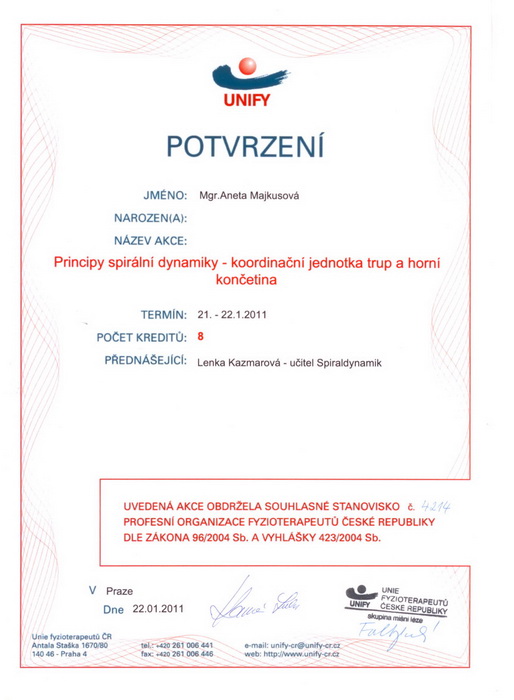 Baví mě každodenní výzva odhalit tajemství lidského těla, najít a odstranit klíčový problém. Je úžasný pocit pomoci člověku, který přichází se svým problémem, který jej určitým způsobem limituje. Někomu pomůžete od bolesti krční páteře, jinému pomáhate překonávat pohybový handicap vzniklý například úrazem míchy. Věřím, že díky této různorodosti mi fyzioterapie nezevšední, naopak mě nutí se neustále vzdělávat.