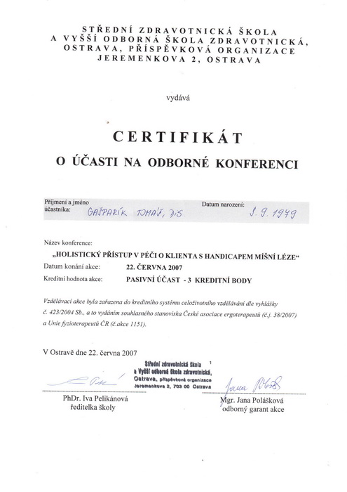 Pocházím z Ostravy, ale nyní žiji s manželkou, která je také fyzioterapeutkou, synem Mikulášem a